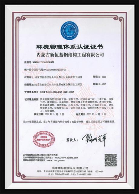 环境管理体系认证证书